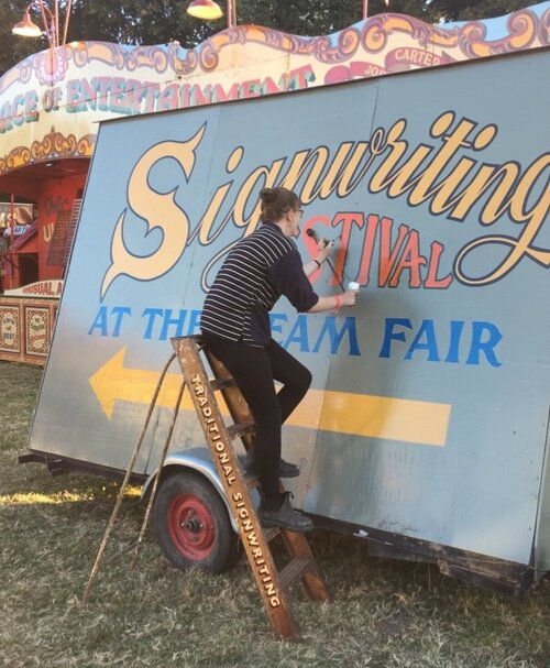 Since 2011, I have specialised in the art of traditional signwriting, lining and fairground art, serving the travelling industries of the fairground and circus, and the preservation industries of steam and heritage.